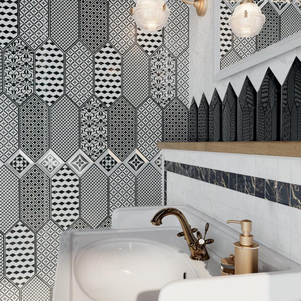 Плитка 35007 Келуш черный глянцевый 14х34