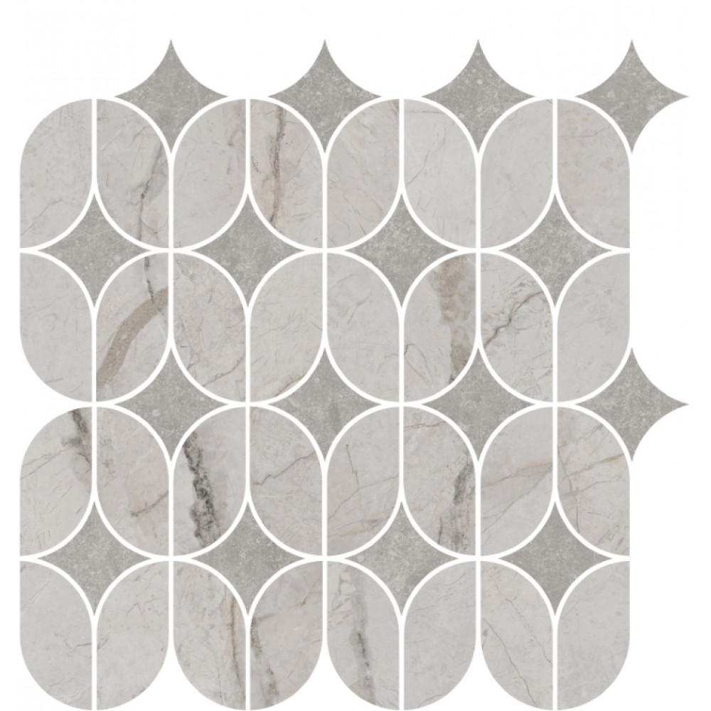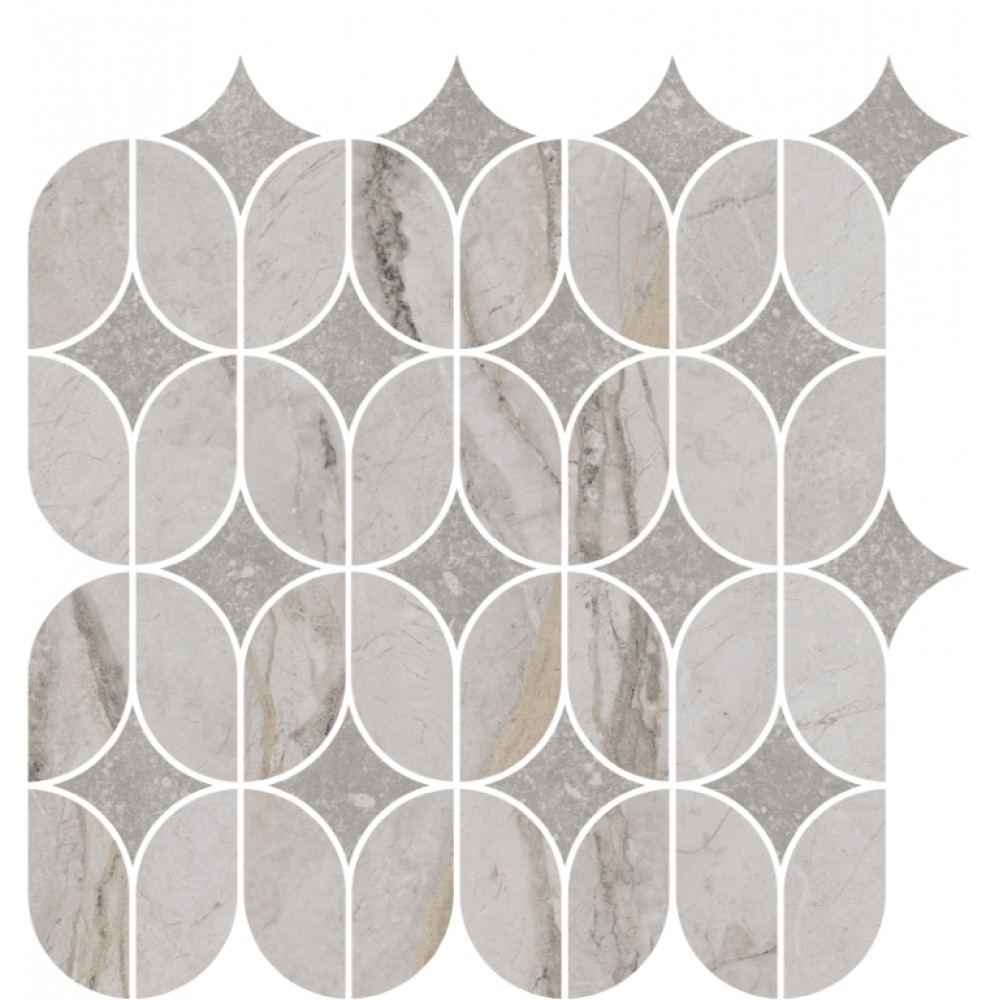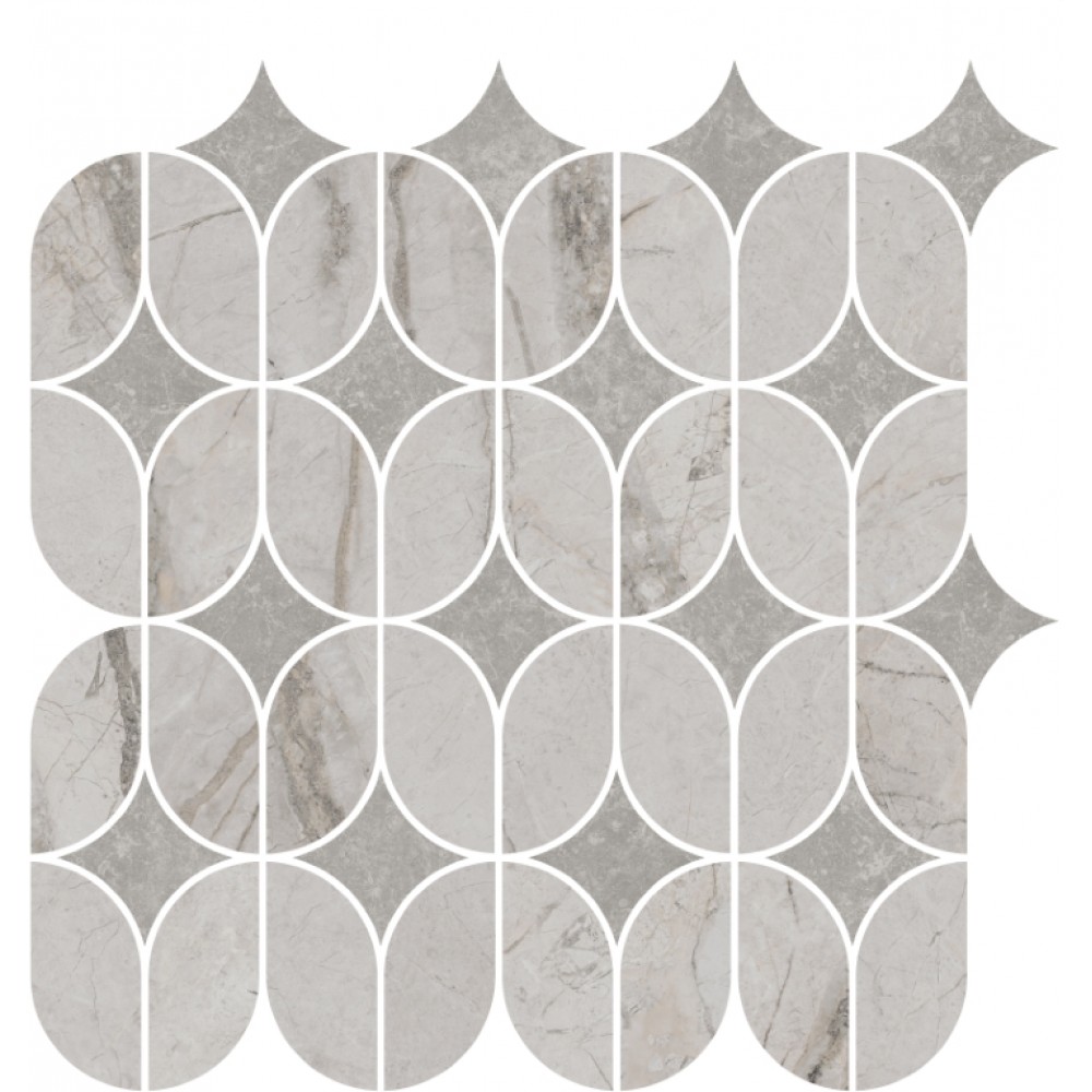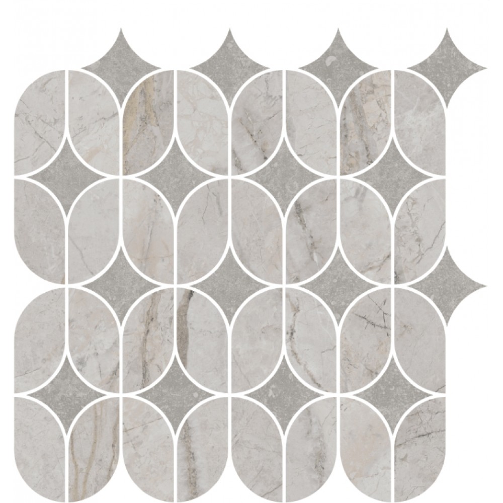 Плитка KMD2HID004BR Декор Ифран наборный серый светлый глянцевый обрезной 30x32,5x0,9
