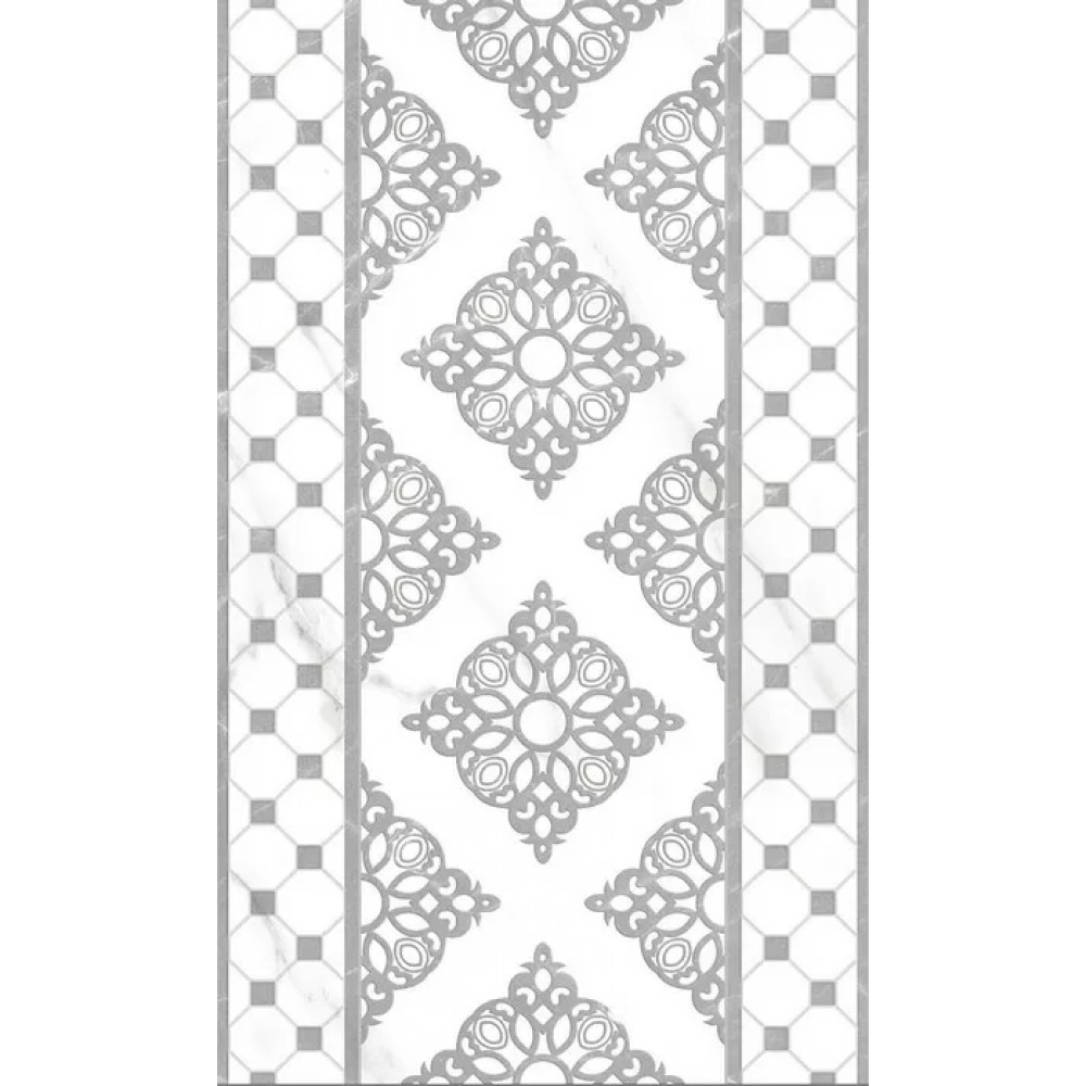 Российская, матовая плитка Elegance Grey decor 01 30x50 прямоугольной формы, размера 30x50, белого цвета. Данный вид плитки, с оригинальным орнаментом, подойдет для декора Вашей ванной. Чтобы купить Elegance Grey decor 01 30x50, сделайте заказ через корзину или по телефону .