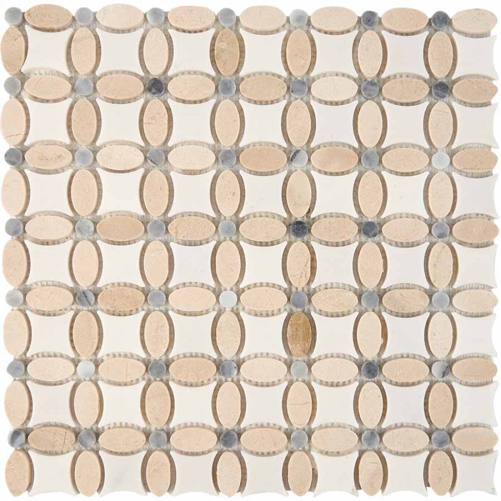 Мозаика PIX281 Cream marfil, Thassos, Athens grey из мрамора полированная 32x32 336х336x8
