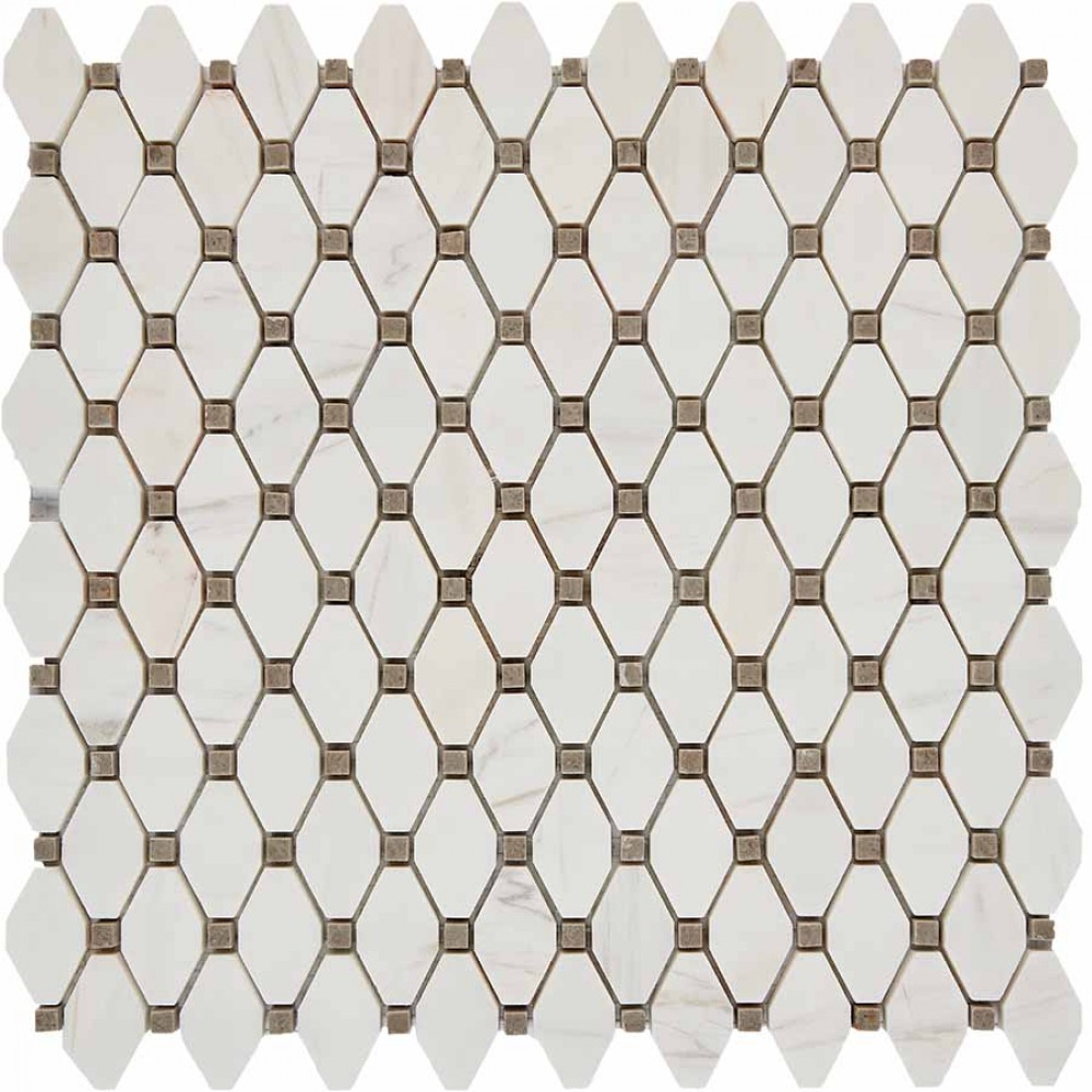 Мозаика PIX284 Bianco Dolomite, Cinderella Grey из мрамора полированная 39x24 286х295x7
