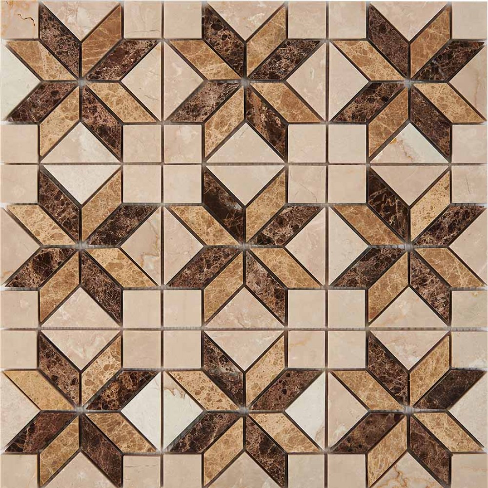 Мозаика PIX286 Botticino, Dark, Light Emperador из мрамора полированная 23x23 298х298x6