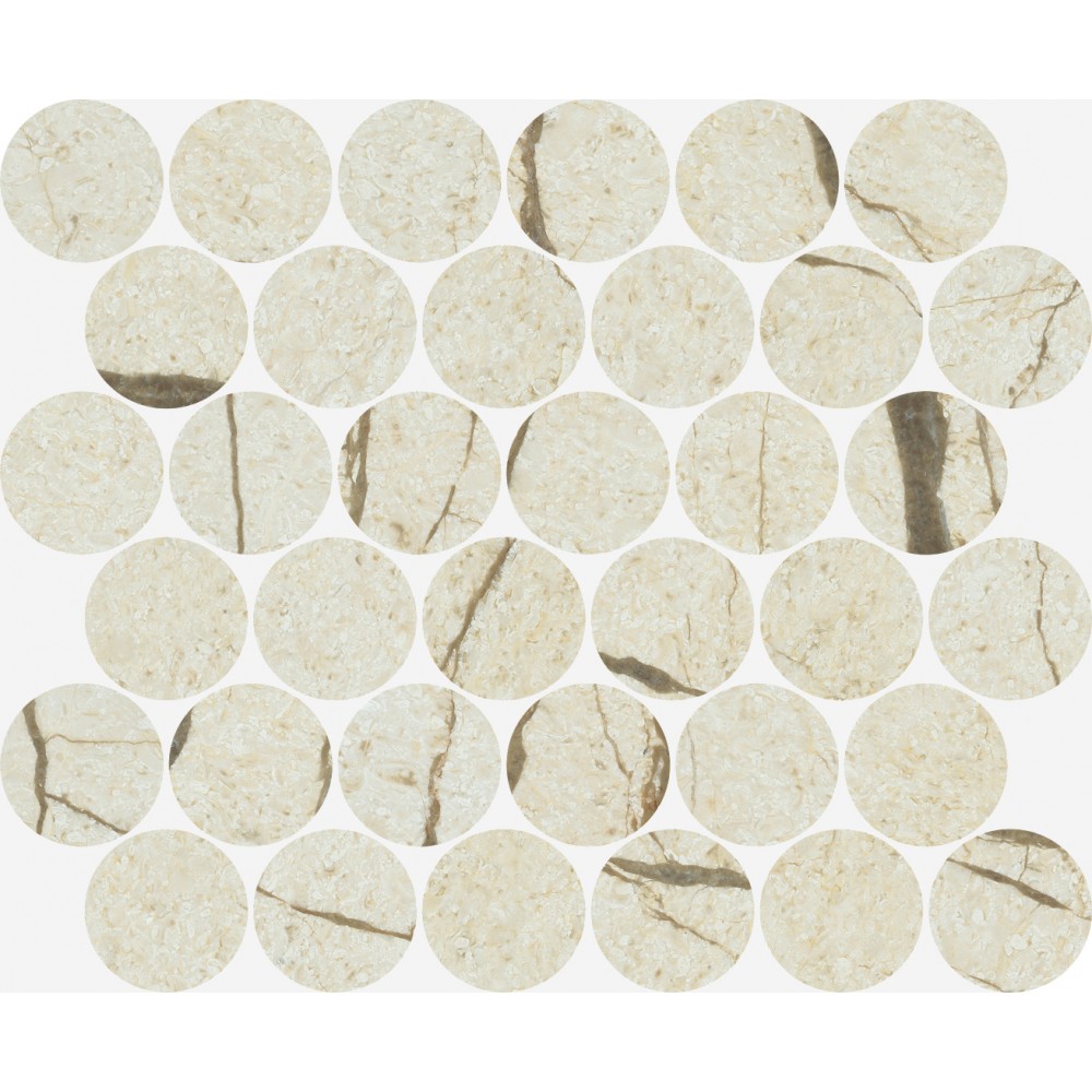 Российская глянцевая мозаика 600110000934 Charme Deluxe Ривер Мозаика Лаунж 26.2x30.2фишками круглой формы, размером сетки 30.2x26.2, кремового цвета. Данный вид керамической мозаики, в виде мелких камней, выполненный в едином цвете, подойдет как декор Вашей ванной. Чтобы купить 600110000934 Char...