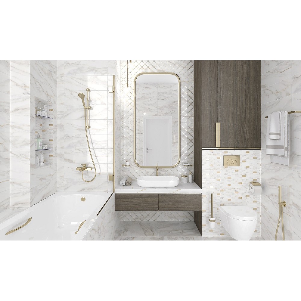 Мозаика MM60157 Декор мозаичный Aragon белый золото 20х60
