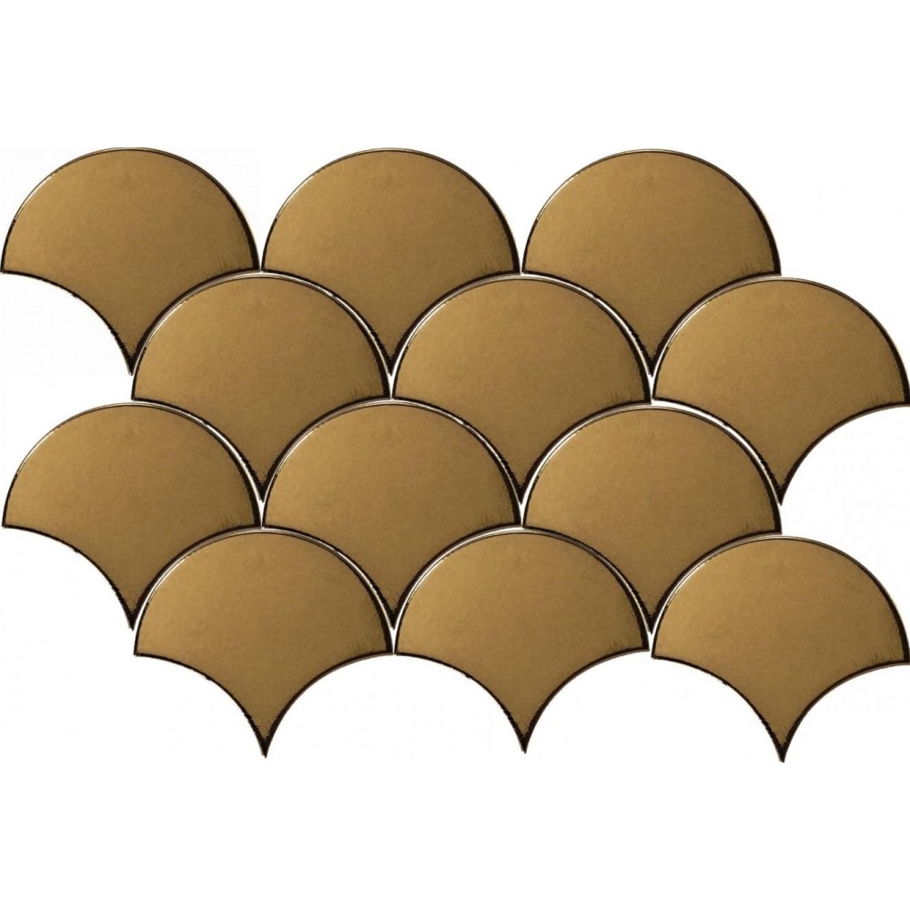 Испанская, глянцевая плитка 23842 Scale Fan Metallic 10,6х12 прямоугольной формы, размера 10.6x12, золотого цвета. Данный вид плитки, одноцветной, подойдет для стены Вашей ванной. Чтобы купить 23842 Scale Fan Metallic 10,6х12, сделайте заказ через корзину или по телефону .