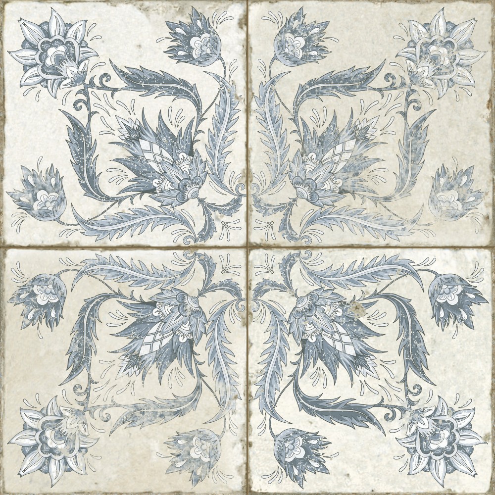 Испанская, матовая плитка 26171 FS IVY BLUE 45x45 квадратной формы, размера 45x45, белого цвета. Данный вид плитки, с оригинальным орнаментом, подойдет для пола Вашей ванной. Чтобы купить 26171 FS IVY BLUE 45x45, сделайте заказ через корзину или по телефону .