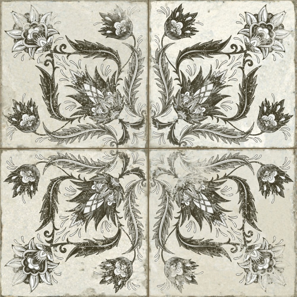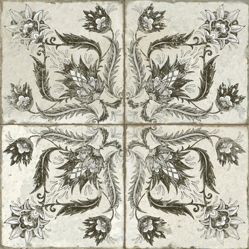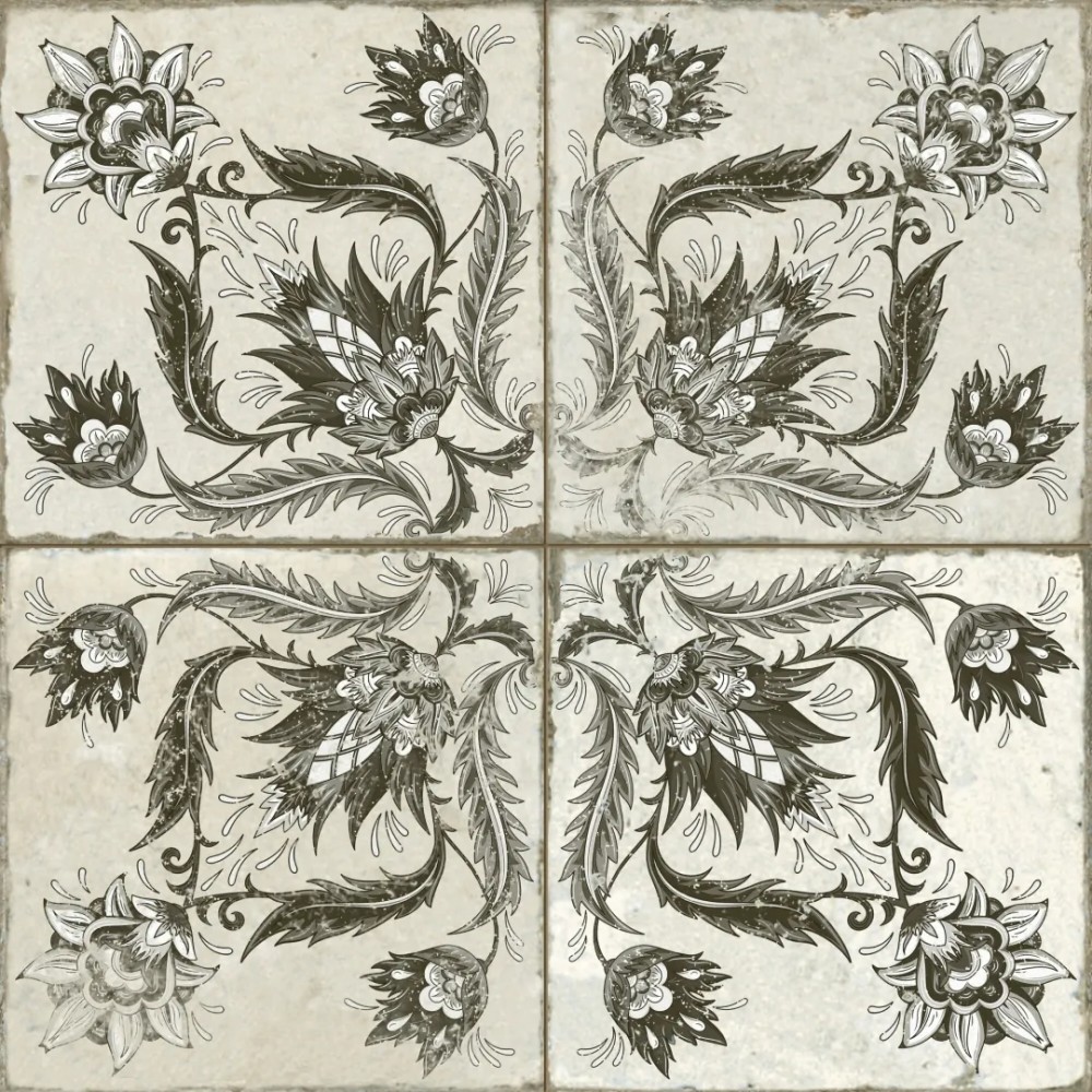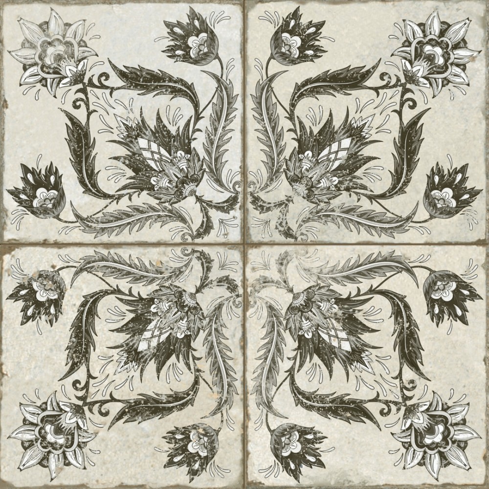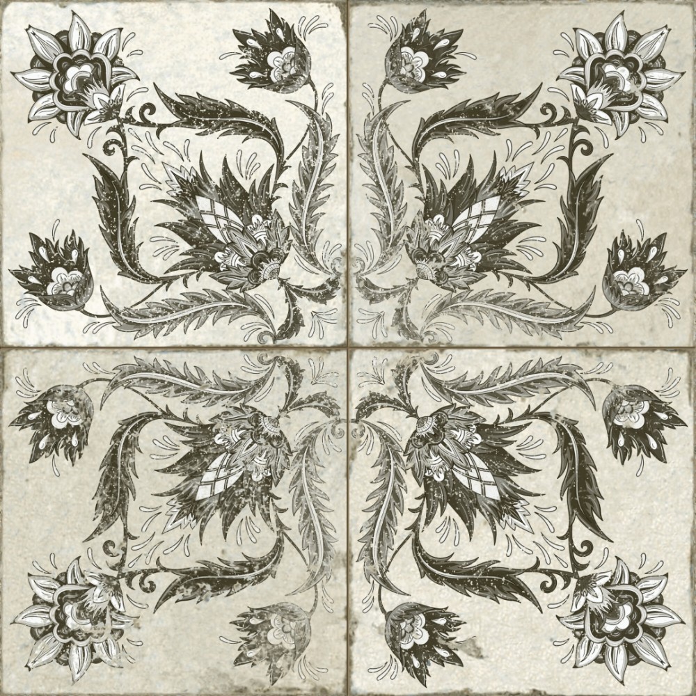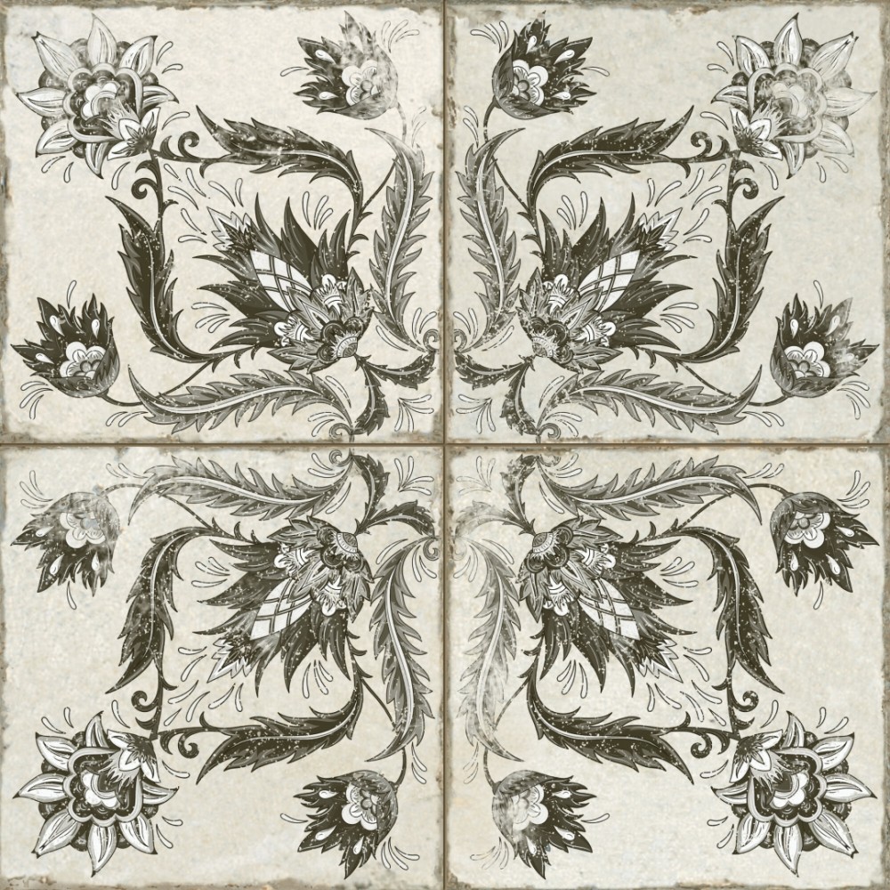 Испанская, матовая плитка 39368 Fs Ivy Black 45x45x0,95 квадратной формы, размера 45x45, белого цвета. Данный вид плитки, с оригинальным орнаментом, подойдет для пола Вашей ванной. Чтобы купить 39368 Fs Ivy Black 45x45x0,95, сделайте заказ через корзину или по телефону .
