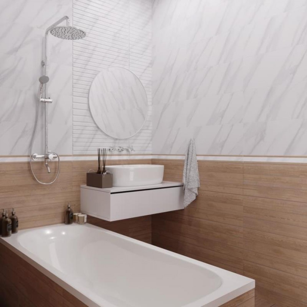 Российская, глянцевая плитка 10100000555 MontBlanc Серый 60x25 прямоугольной формы, размера 60x25, белого цвета. Данный вид плитки, имитирующий камень, подойдет для стены Вашей ванной. Чтобы купить 10100000555 MontBlanc Серый 60x25, сделайте заказ через корзину или по телефону .
